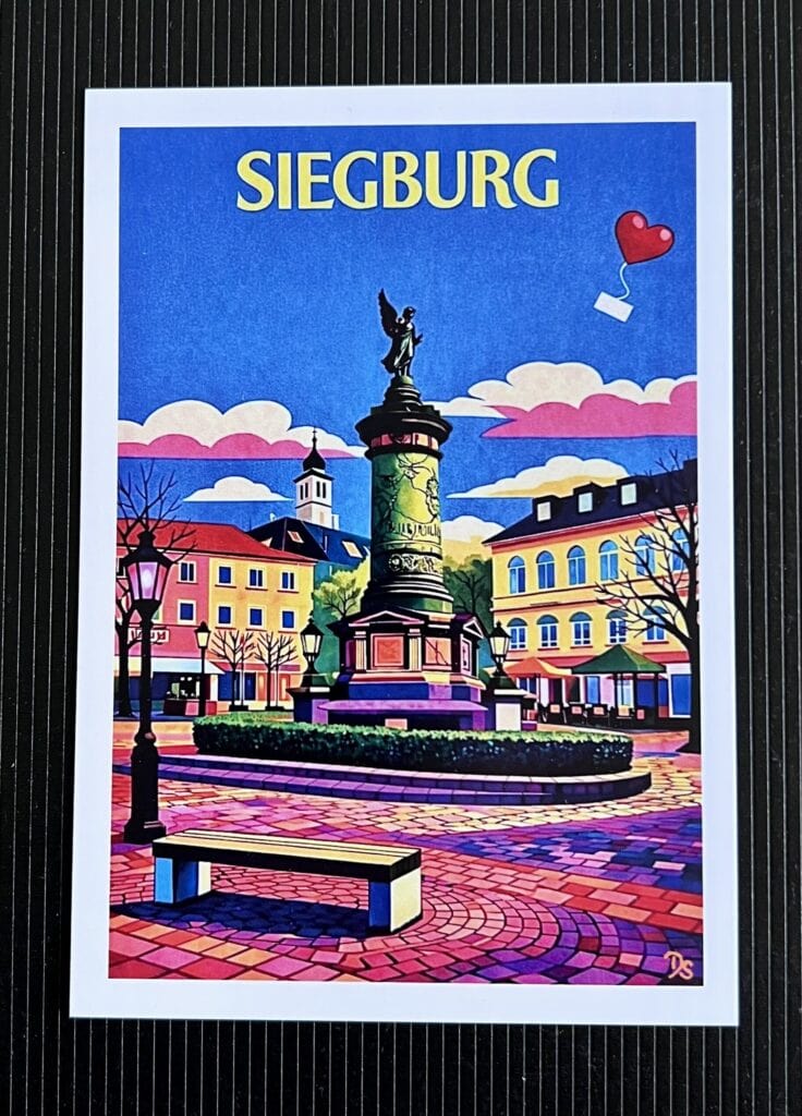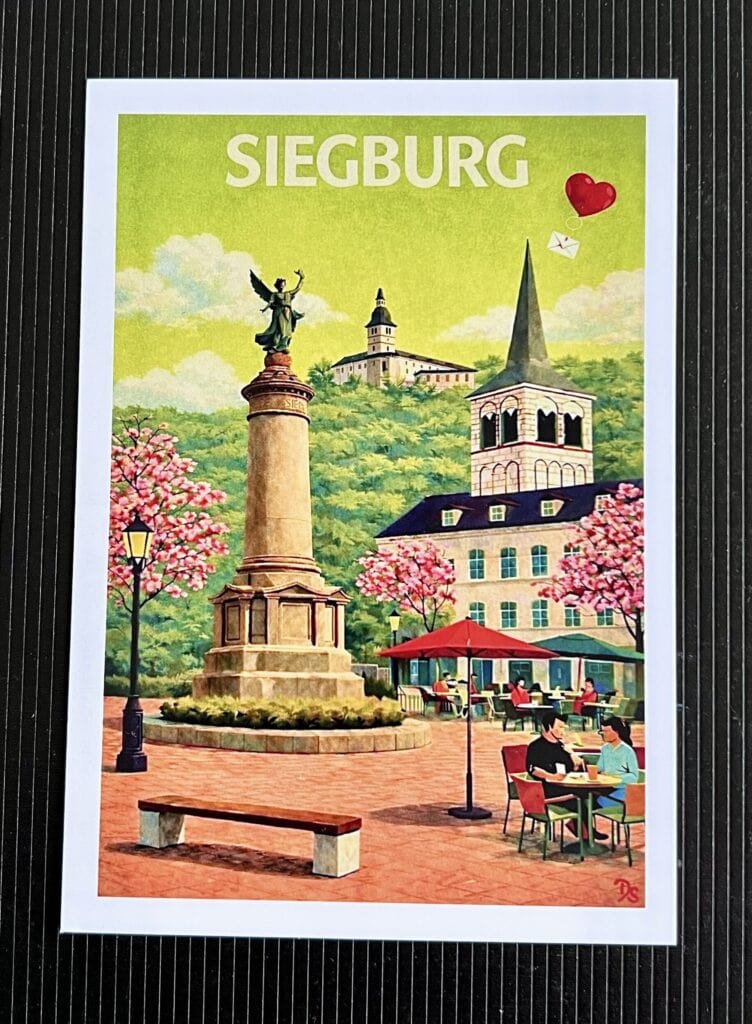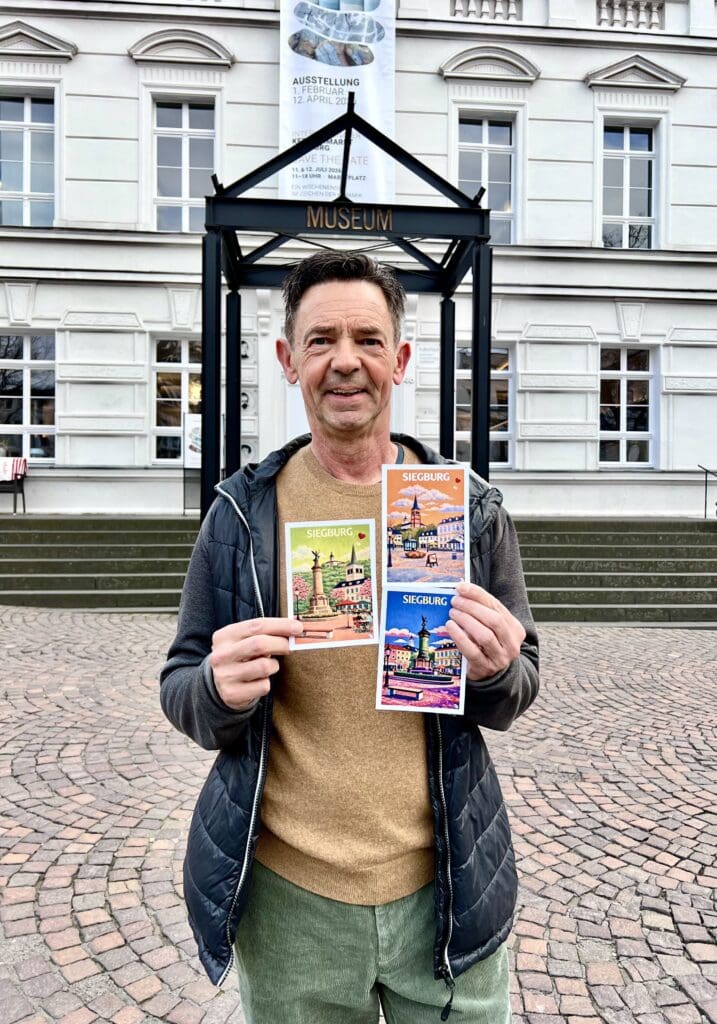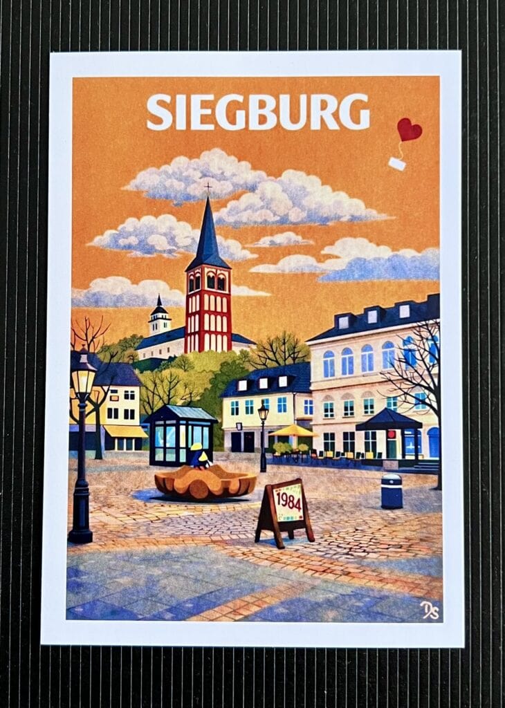 Rechtzeitig zum Frühlingsbeginn ist die neue farbenfrohe Kollektion an „Siegburg Karten“ fertig geworden, die den Siegburger Marktplatz mit seinen Sehenswürdigkeiten aus verschiedenen Perspektiven zeigt. Die Karten können ab sofort im Museumsshop in Siegburg erworben werden.